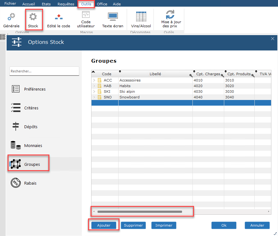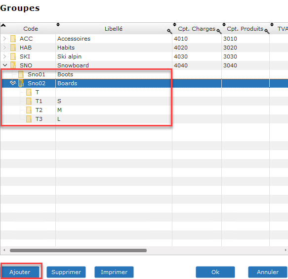 Vous pouvez pour faciliter la gestion de votre stock créer des groupes, des sous-groupes et des catégories: