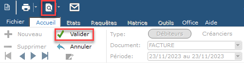 Pour visualiser l'aperçu de votre document, vous devez d'abord le [Valider], puis vous trouverez dans la barre en haut à gauche de votre écran, l'icône de visualisation.