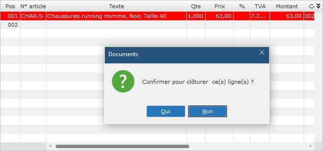 • Sélectionner la/les ligne(s) de commande à clôturer