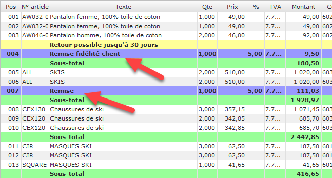 Vous pouvez créer un rabais sur votre document, pour cela,