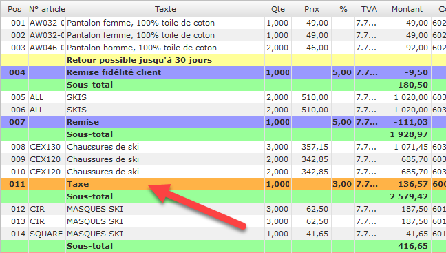 Comme pour le rabais, sur votre nouvelle ligne, appuyer sur le clique droit de votre souris pour choisir le type de ligne (Taxe sur total en cours). Remplissez votre taxe et modifier si besoin la désignation.